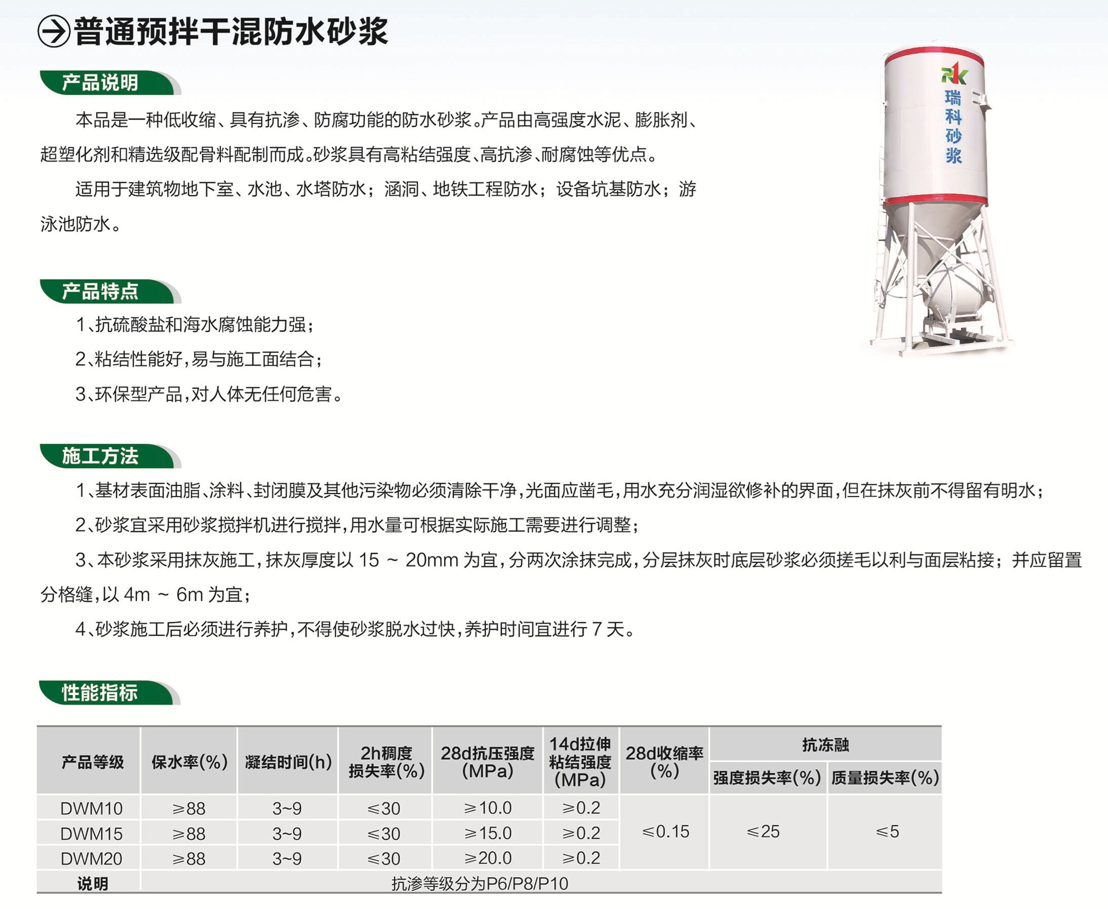 普通預拌干混防水砂漿